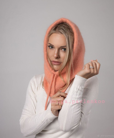 Теплый, нежный, пушистый капор покорит вас с первого прикосновения! (Цвет коралловый)