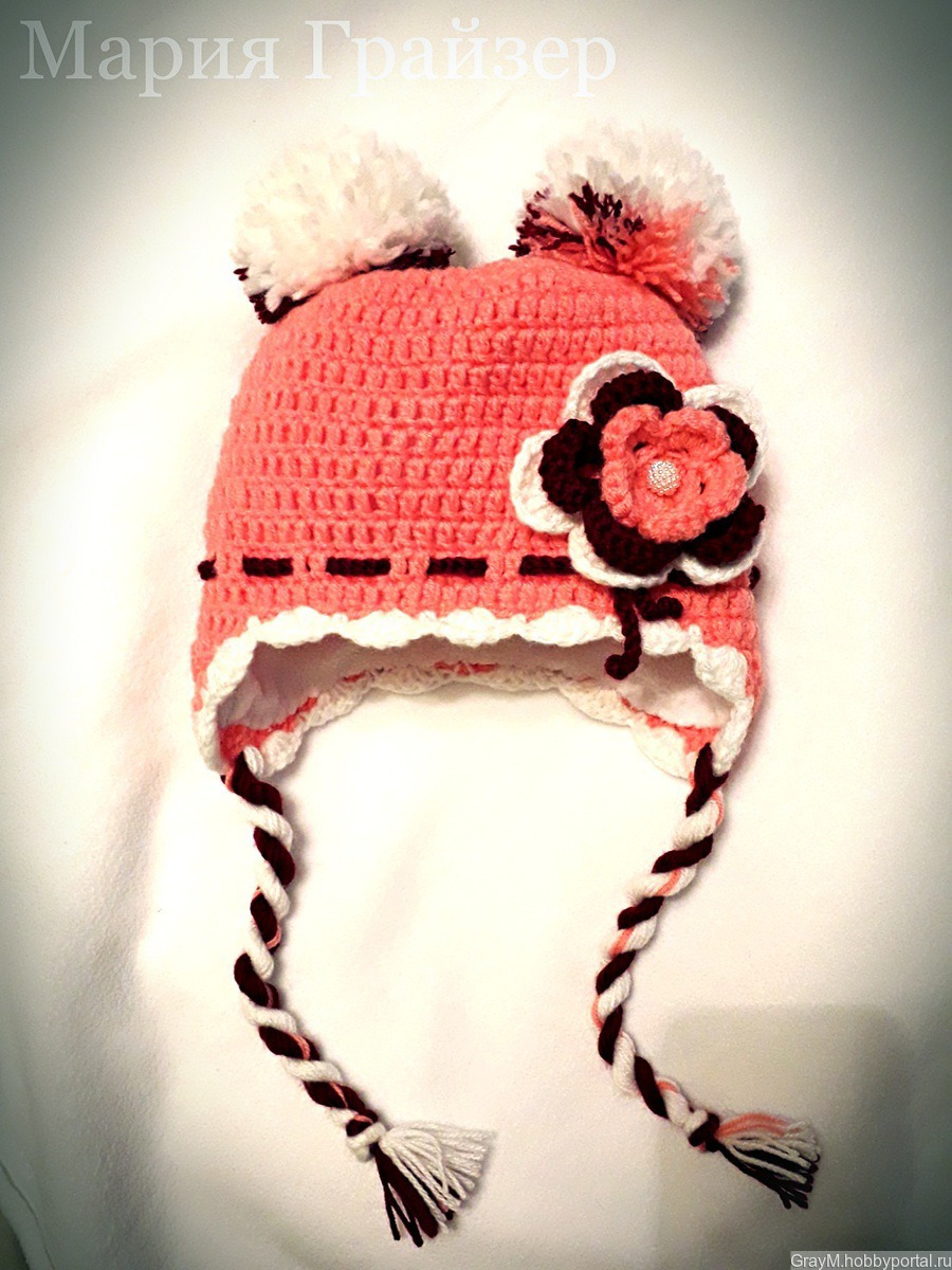 шапка крючком, шапка для девочки, шапка с цветком, шапка с помпонами, шапка красивая, шапка крючком на девочку