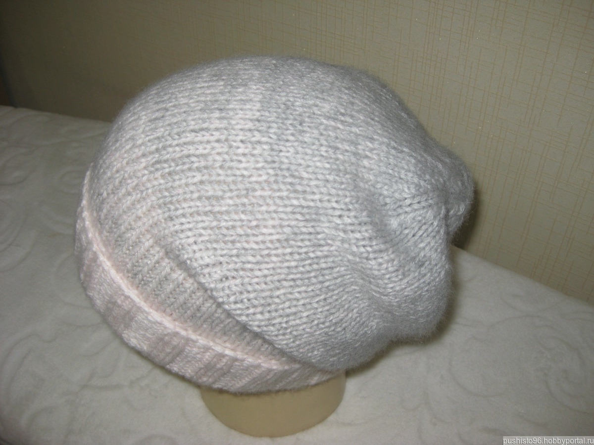 Шапка вязаная с градиентом от бело-розового до светло-серого цвета. Шапка связана их невероятно нежной и мягкой пряжи Color City Norka Mink: 48 % пуха норки, 52 % козьего пуха.