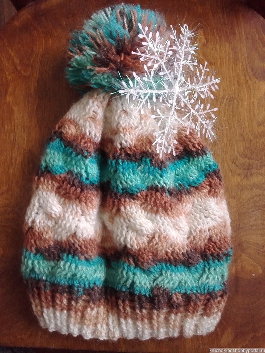 Шапка связана крючком интересным узором "коса с тенью". Шапочка таким узором получается мягкая и эластичная.