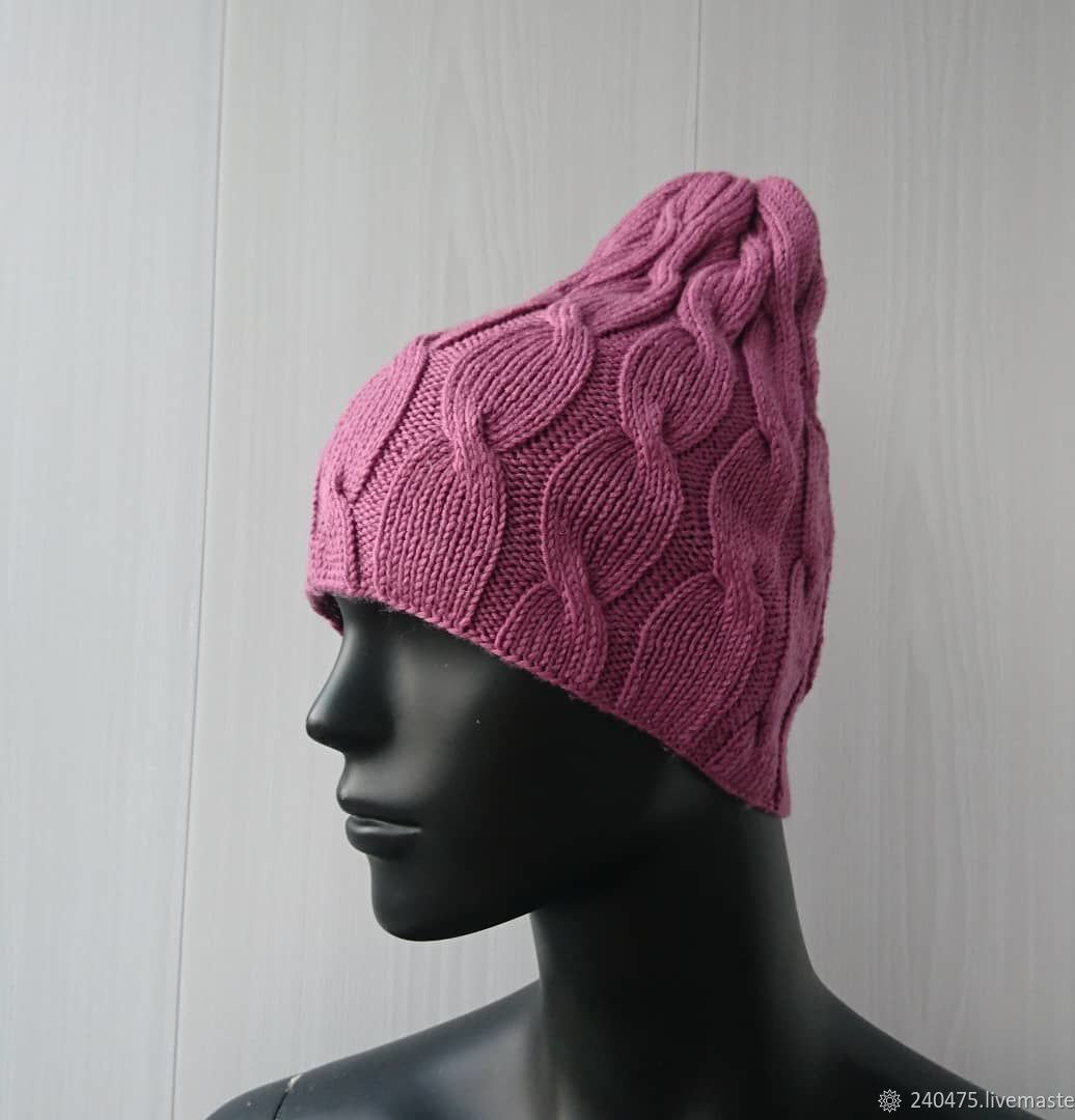Шапочка из мериносовой шерсти в цвете вереск, мягкая,шелковистая,не толстая Из итальянской пряжи.На размер 54-57