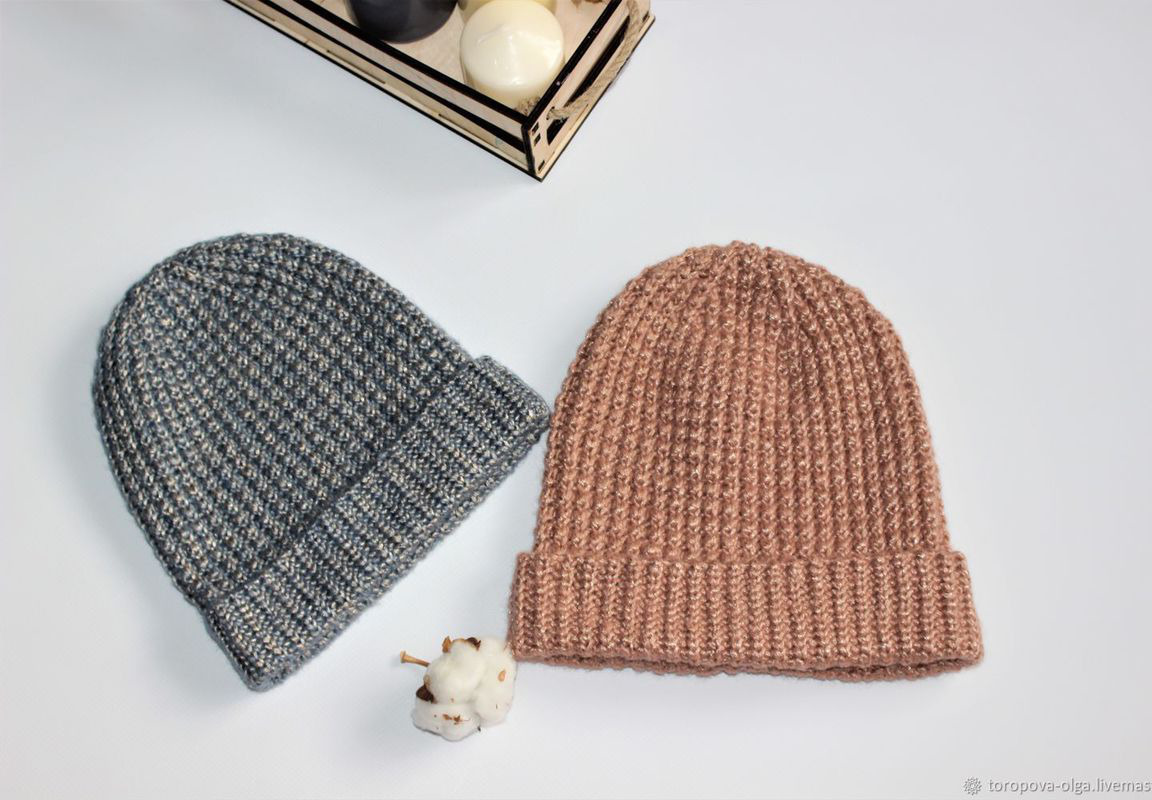 Шапочки связаны из мериноса с добавлением полиамида, который придает красивый блеск.