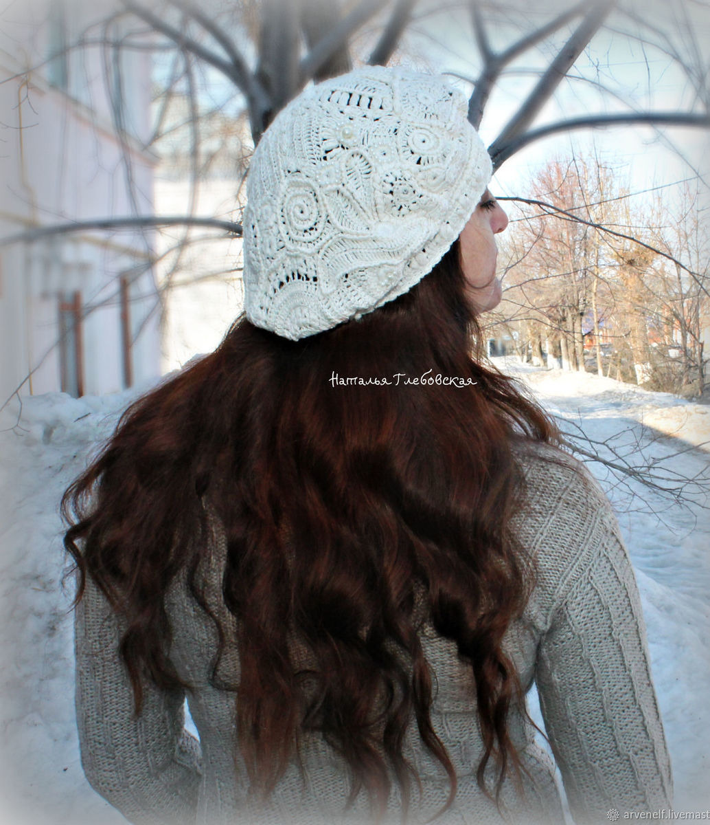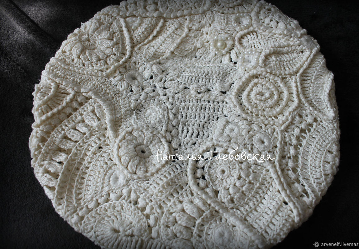 Шапочка нежного оттенка"экрю".Для ранней весны- в меру плотная.Для романтичной барышни,а может и не романтичной вовсе. Связана в технике "фриформ"- то есть абсолютная свобода. Никогда не знаешь,что получится в результате,какой рисунок будет на изделии.А значит- такая шапочка в единственном экземпляре,и повторить точь в точь не смогу ее и я сама.Связана шапочка из полушерсти с лавсаном- не деформируется , прекрасно стирается.В некоторых местах, произвольно пришиты бусины.Размер - на голову объемом 58-60 см.Готовая работа, продается.Свяжу в таком стиле в другом цвете,размере.