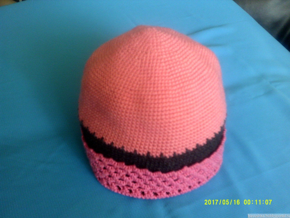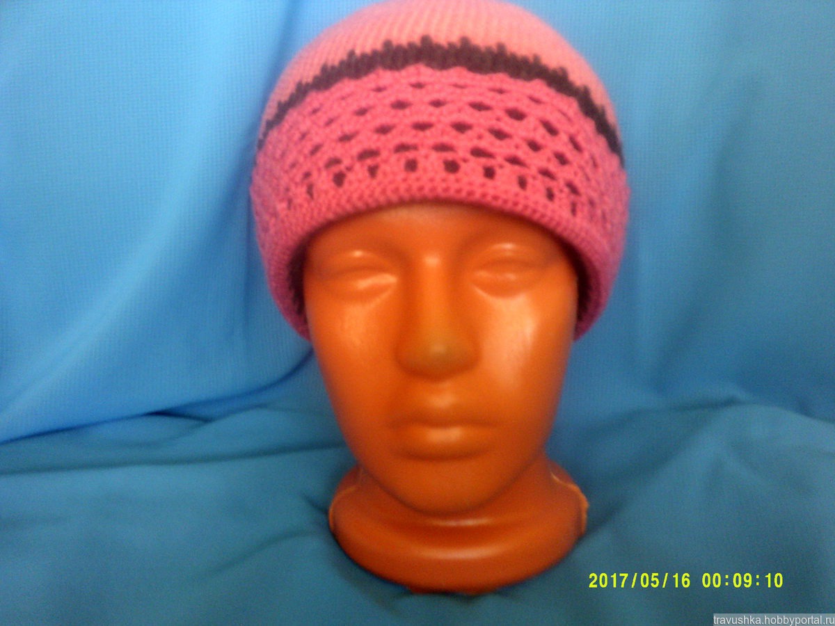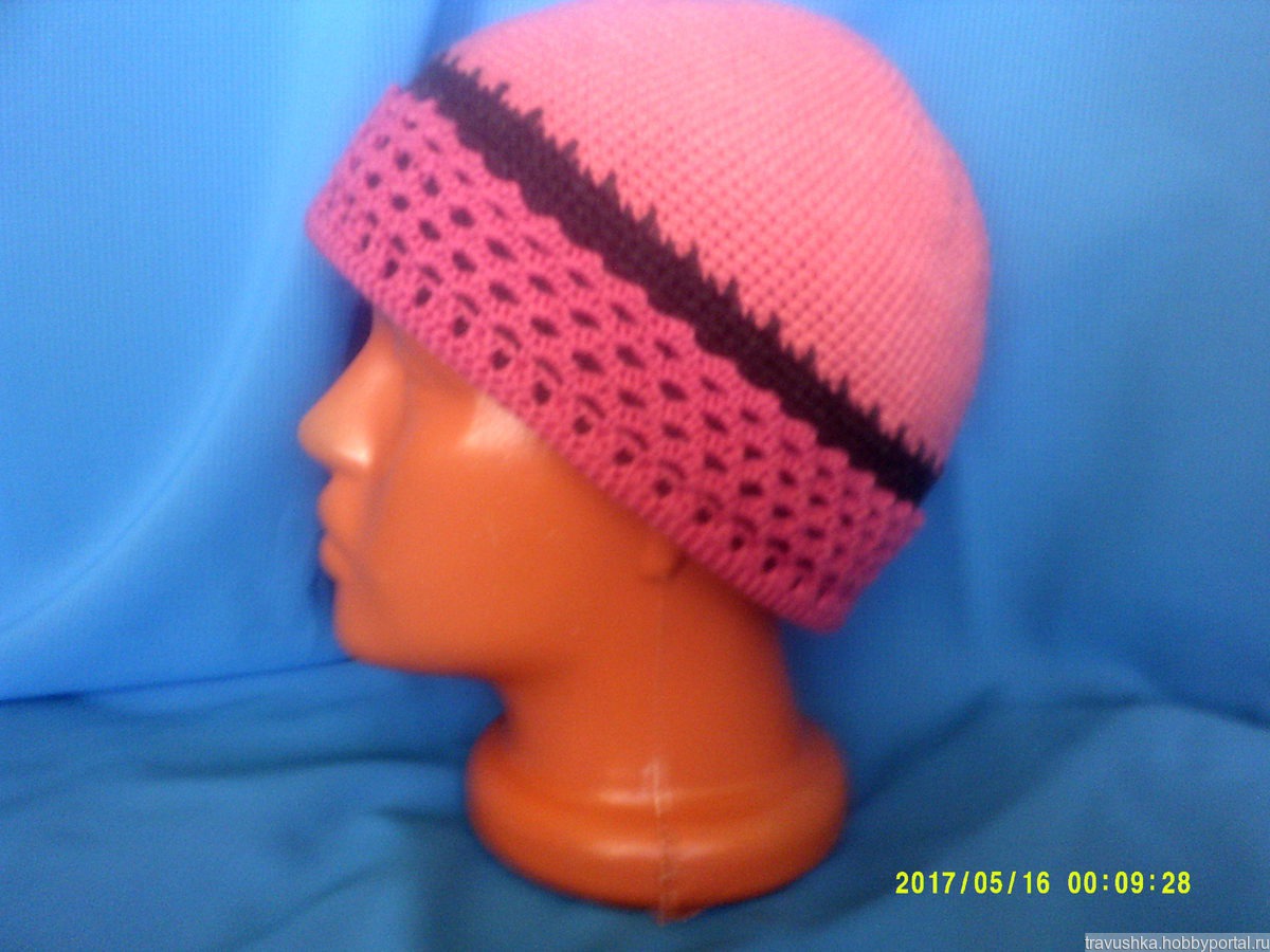 Шапочка для весны или осени с ажурной отделкой из контрастных цветов. Сочетание двух оттенков розового и в противовес к ним черного вносит свою оригинальную нотку в дизайн модели. Актуально для тех, кто любит контрасты.