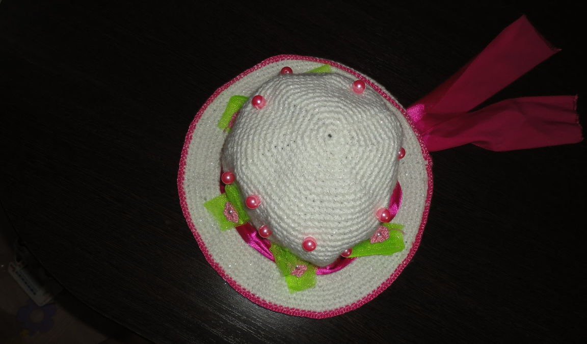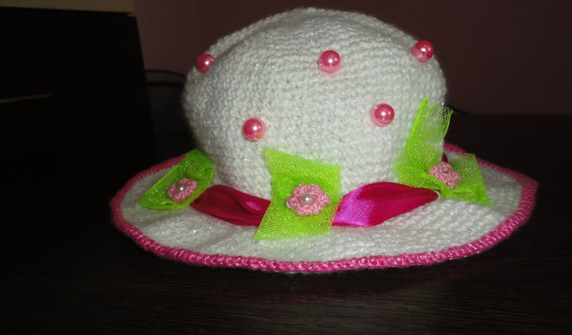 Шляпа связана крючком из детской пряжи с добавлением люрексной нити. Расшита вручную. Шляпа станет прекрасным дополнением к любому наряду. Работу можно выполнить в любом цвете.