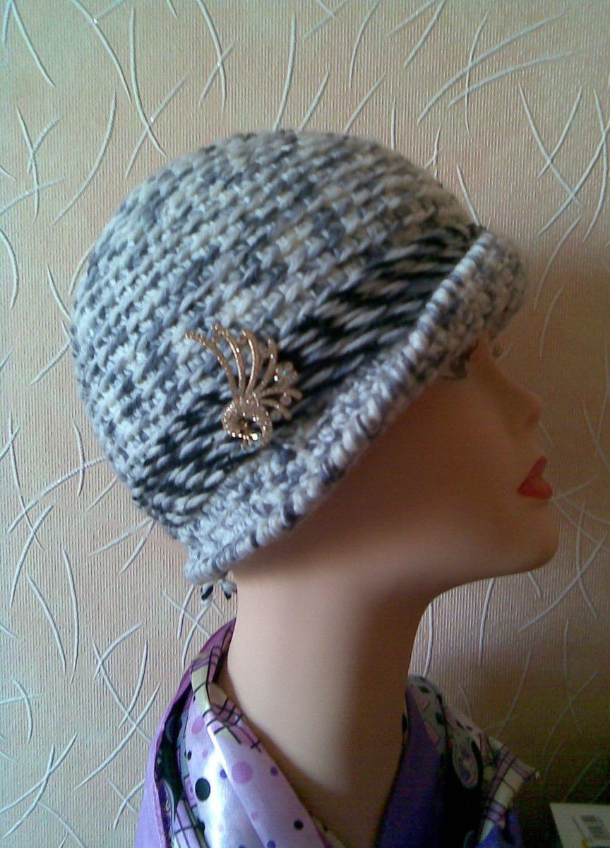 Шляпка выполнена крючком из меланжевой пряжи. В стоимость брошка не включена. Идеальный вариант для романтических девушек. При носке не колется. Шляпка Хорошо сочетается с белым шарфиком.
