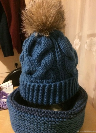 Теплая вязаная шапочка ручной работы связана в две нити с помпоном из енота и снуд ручной работы. На любой размер головы. Как для девочки (девушки), так и для мальчика. В любом цвете.