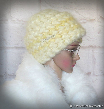За окном ещё осень, но так близка уже зима. Холода не за горами. Хочу предложить вам тёплую зимнюю шапку из натурального классического мохера, нежную на ощупь и красивую, выполненную в пастельно-жёлтой цветовой гамме.