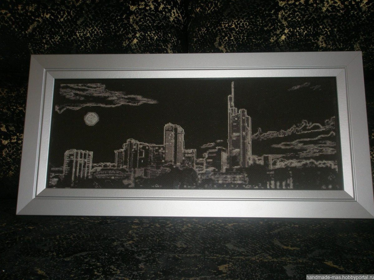 картина "Ночной город" - вышивка крестиком с добавлением светящихся в темноте нитей. Размер готовой работы (без рамки) 19,7*52,8 см.