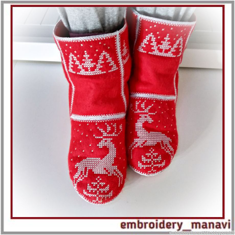 Дизайн для машинной вышивки. Домашние сапоги - все детали по отдельности готовые в пяльцах. 1 размер - на длину ступни 27 см. Пошаговая видео инструкция. Я сшивала на руках, но можно на швейной машине в режиме зиг-заг. Для пялец 200 х 280 мм( но если делать подошву не в вышивальной машине, то можно сделать в пяльцах 200 х 200 мм. )