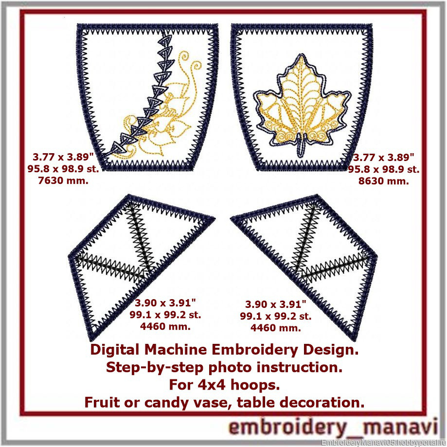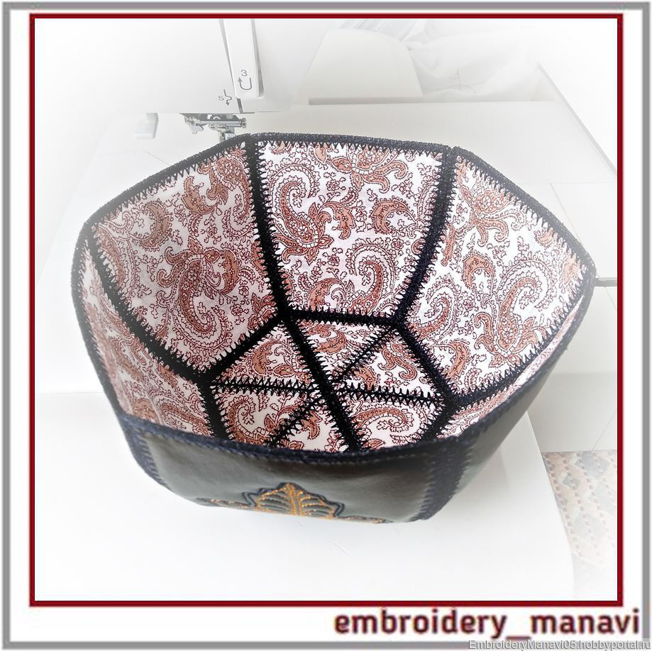 Дизайн для машинной вышивки. Ваза для фруктов или конфет, украшение стола. Из серии дизайнов 3Д - Осенние листья и цветы. Для пялец 100 х 100 мм. Высота готовой вазы - 90 мм, диаметр в верхней части - 190 мм. Ваза для конфет, косметики или принадлежностей для шитья и вышивания. Каждая деталь вышивается в пяльцах, затем собирается вручную или на обычной швейной машине с помощью зигзагообразной строчки. Пошаговая видео-инструкция.