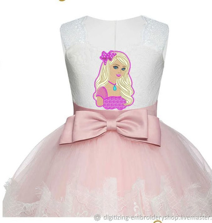 Дизайн машинной вышивки Принцесса кукла с бантом