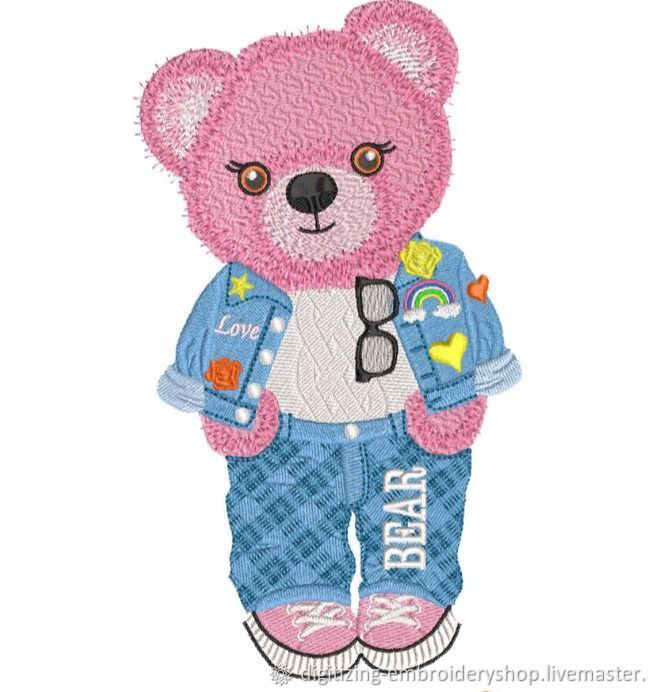 Дизайн машинной вышивки Медвежонок тедди в модной одежде