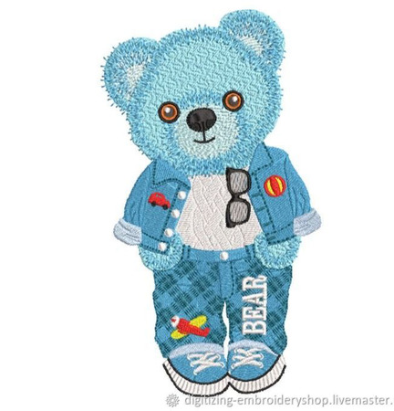 Дизайн машинной вышивки Медвежонок тедди в модной одежде