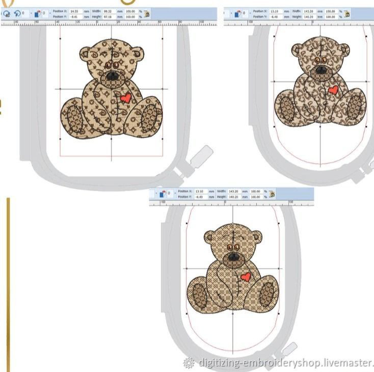 Дизайн машинной вышивки Медвежонок тедди в модной одежде 3 Варианта, 2 размера