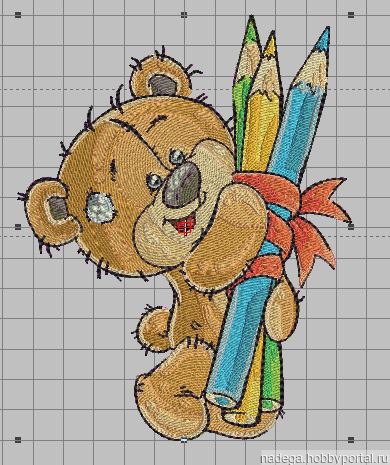 мишка, машинная вышивка, дизайн, программа для вышивки, детская вышивка, вышивка н трикотаже, мишка с карандашами