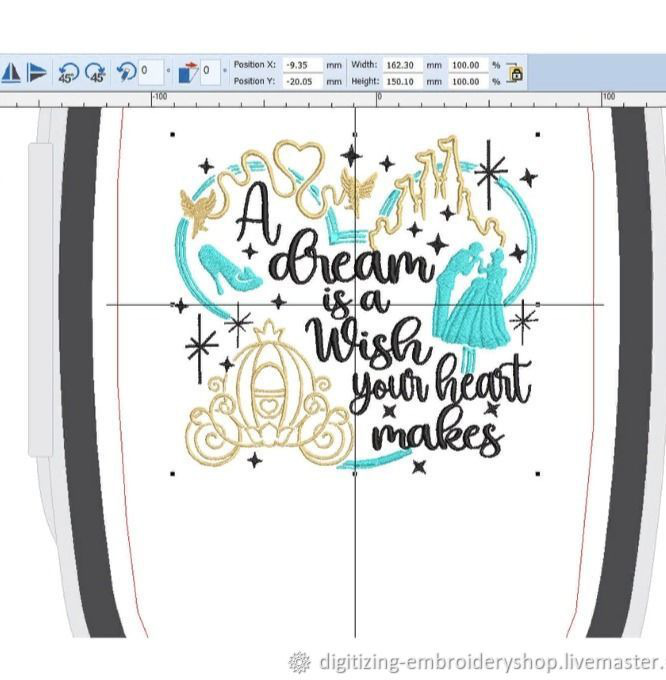 Дизайн машинной вышивки Принцесса Золушка, Cinderella, голова мыши, принц, карета, сказка