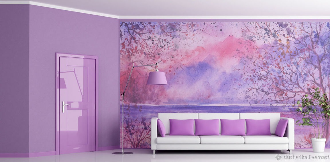 сиреневый, пейзаж, роспись стен, роспись стен на заказ, роспись стен в квартире, роспись стен спб, роспись стен в гостиной, роспись стен в прихожей, заказать роспись стен, роспись стен пейзаж, росписьстен в комнате, акварельная роспись стен