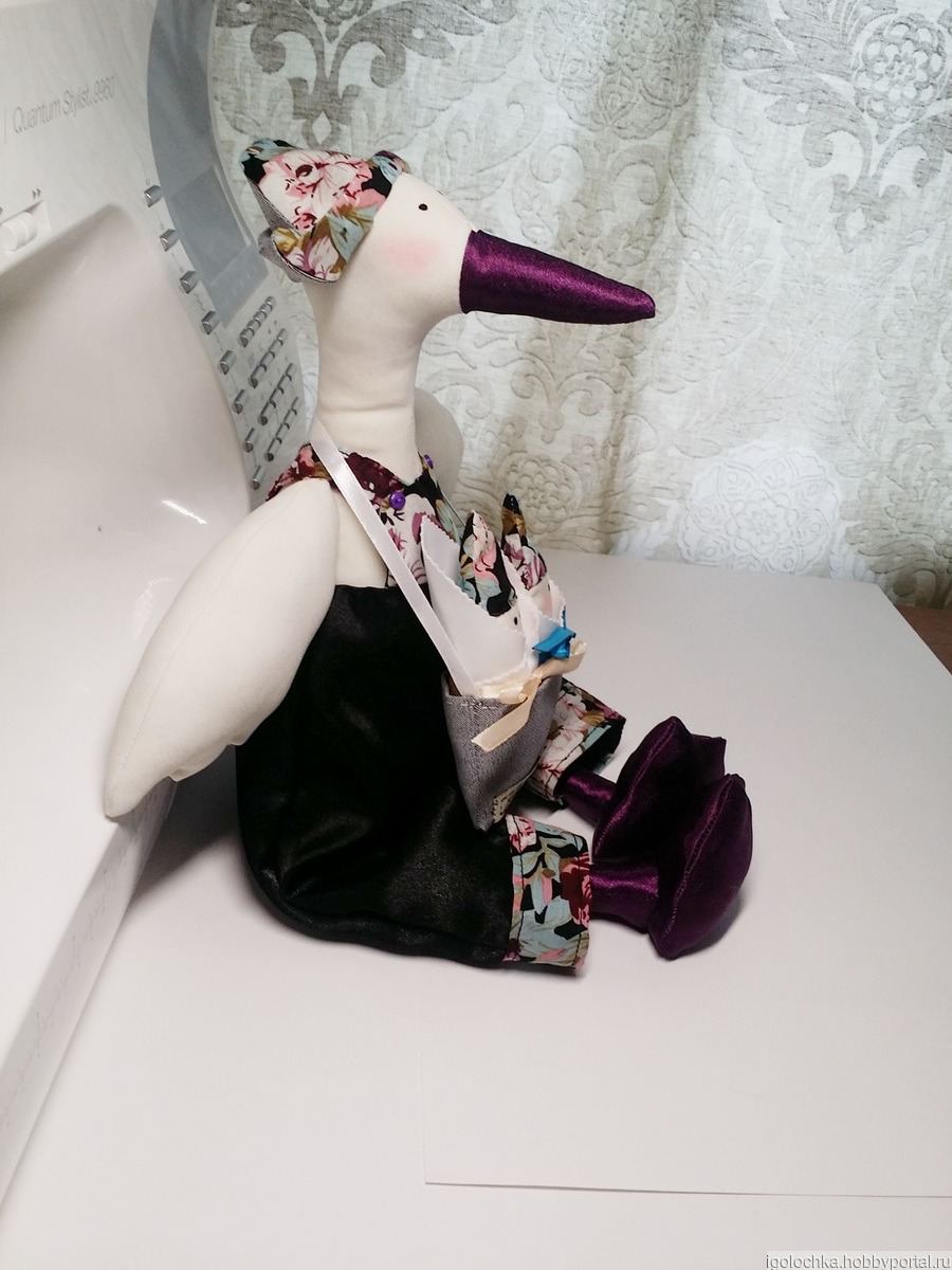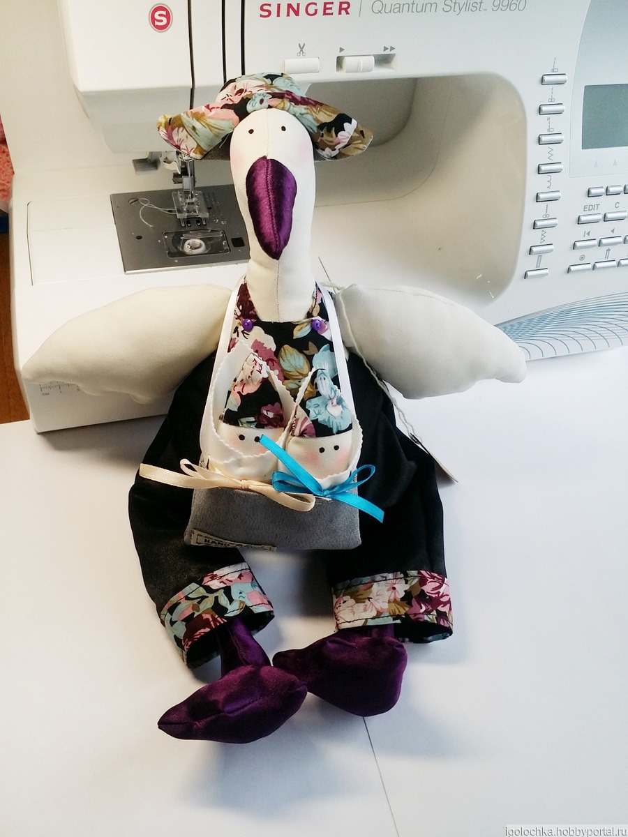 Высота аиста в полный рост 42 см, кукла сидячая.
