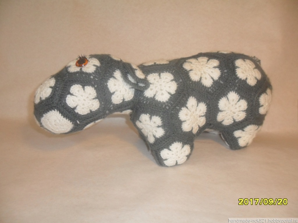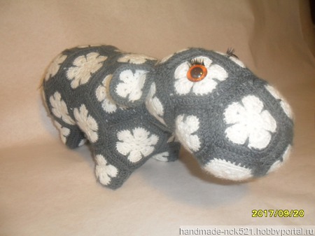 бегемотик связан крючком из мотивов африканский цветок, из пряжи детская пехорка, наполнитель -холлофайбер.