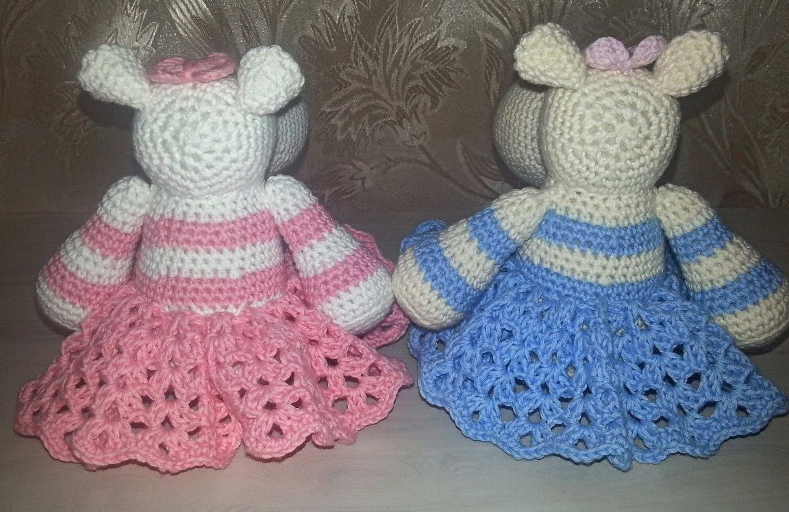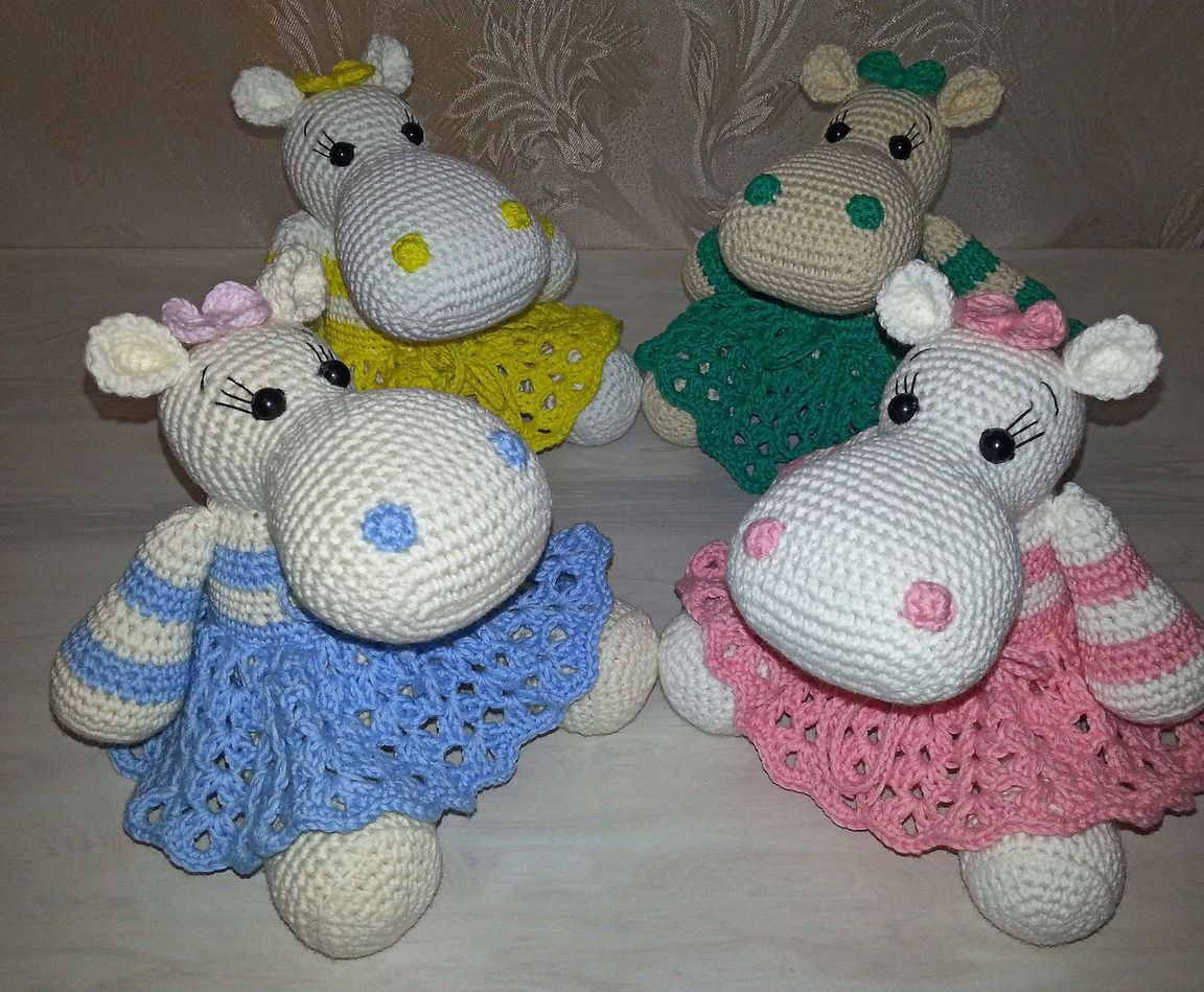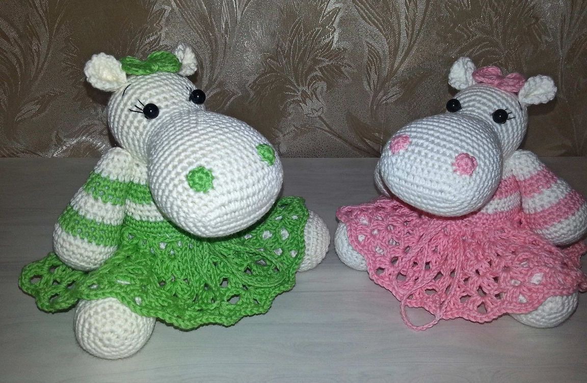 Бегемотики связаны из 100% хлопка, юбочки снимаются. Очень милая и нежная игрушка. Цена указана за 1 бегемотика. Возможно изготовление бегемотиков в другой цветовой гамме. Замечательный подарок близким и друзьям на любой праздник и просто так. Игрушки, сделанные своими руками, хранят тепло и частичку души мастера.