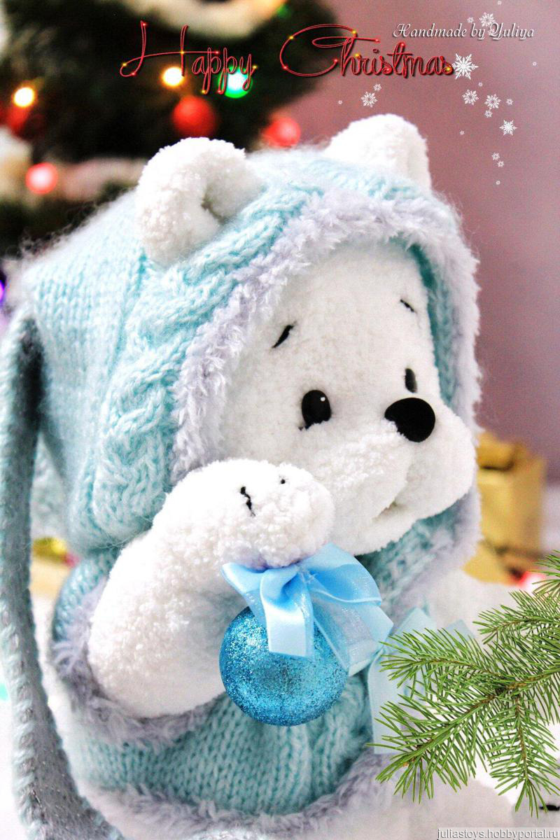 Нежный и очень тактильный медвежонок! Связан из плюшевой пряжи. Прекрасно подойдет в качестве Новогоднего декора.