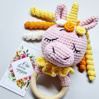 подарок на день рождения, подарок девочке, подарок новорожденной, погремушка вязаная, погремушка ручной работы, грызунок-прорезыватель