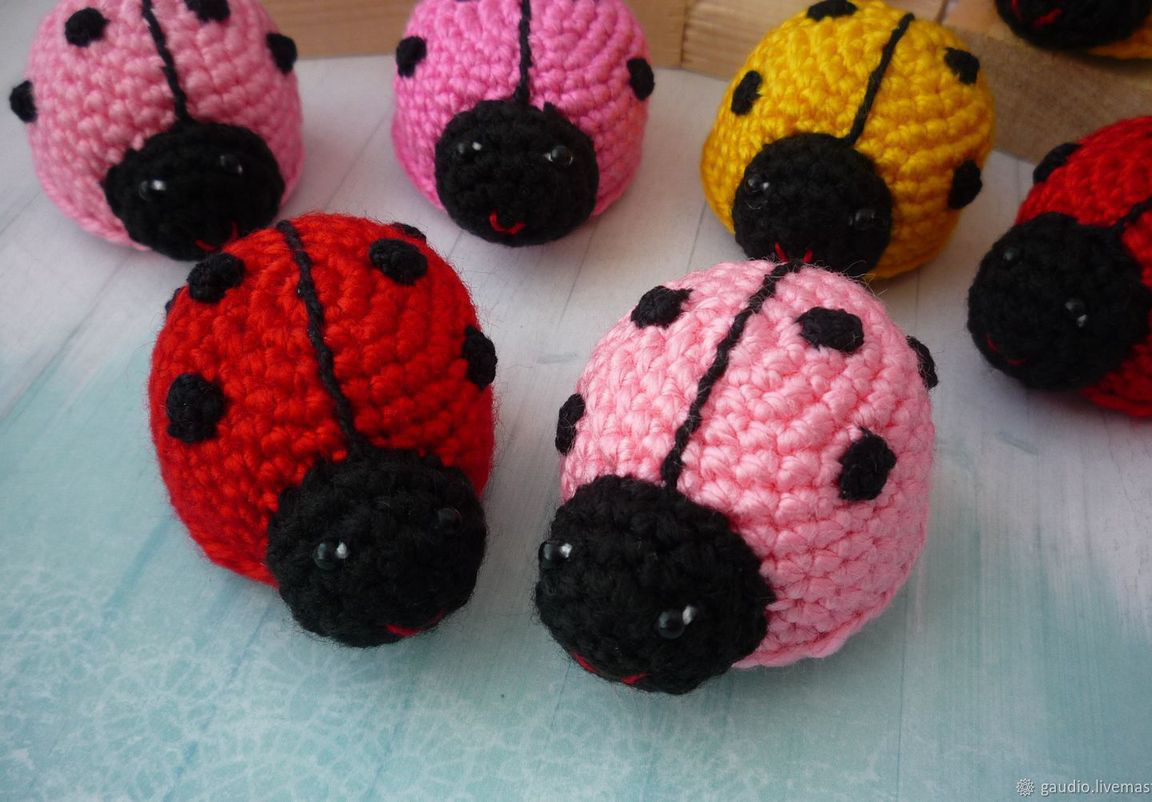 вязаная игрушка, божья коровка, игрушка ручной работы, Сувениры, амигуруми, насекомые игрушки, божья коровка вязаная