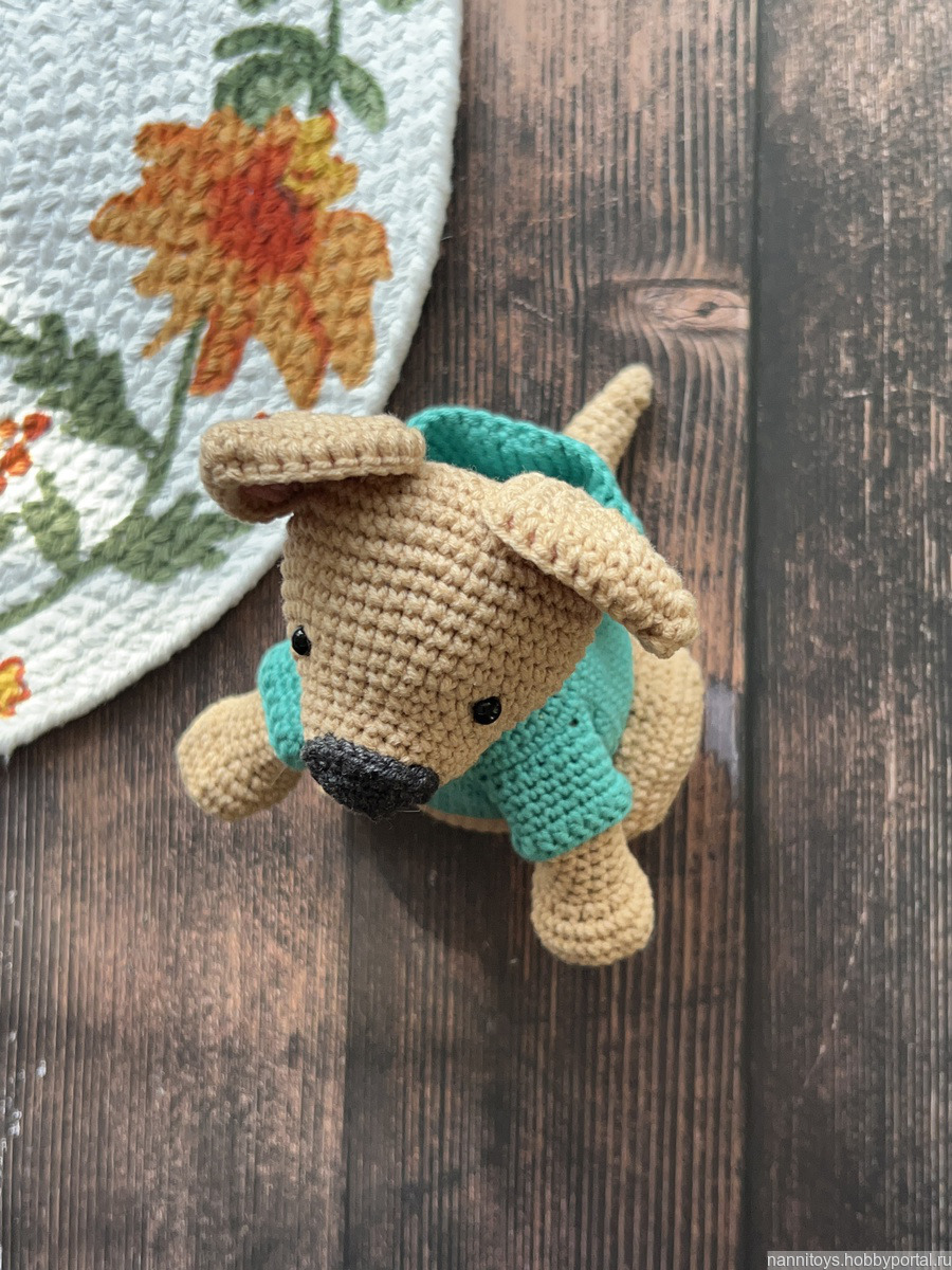 игрушка крючком, игрушка собака крючком, бультерьер собака