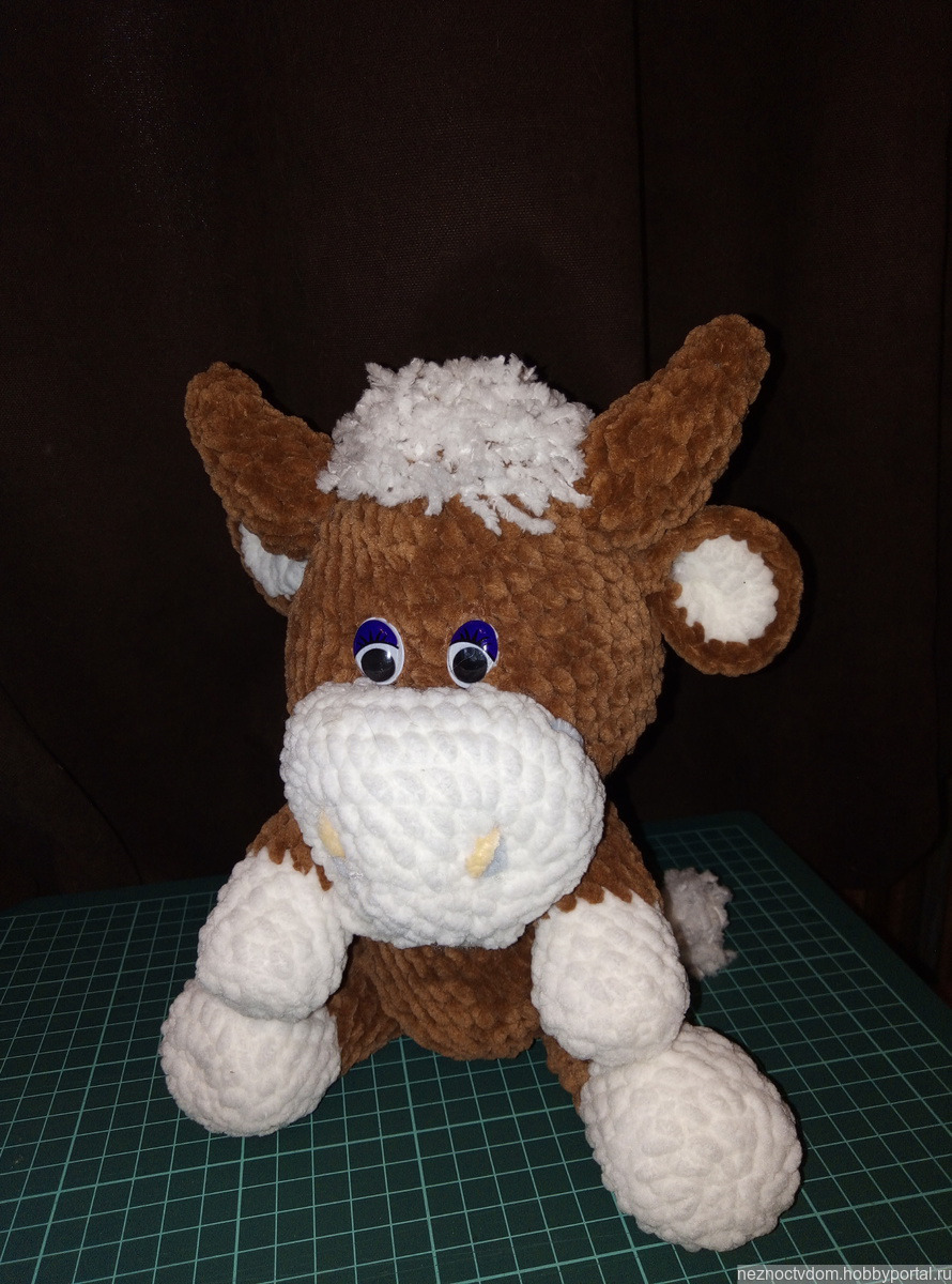 вязаная игрушка, игрушка ручной работы, игрушка крючком, плюшевая игрушка, бычок игрушка