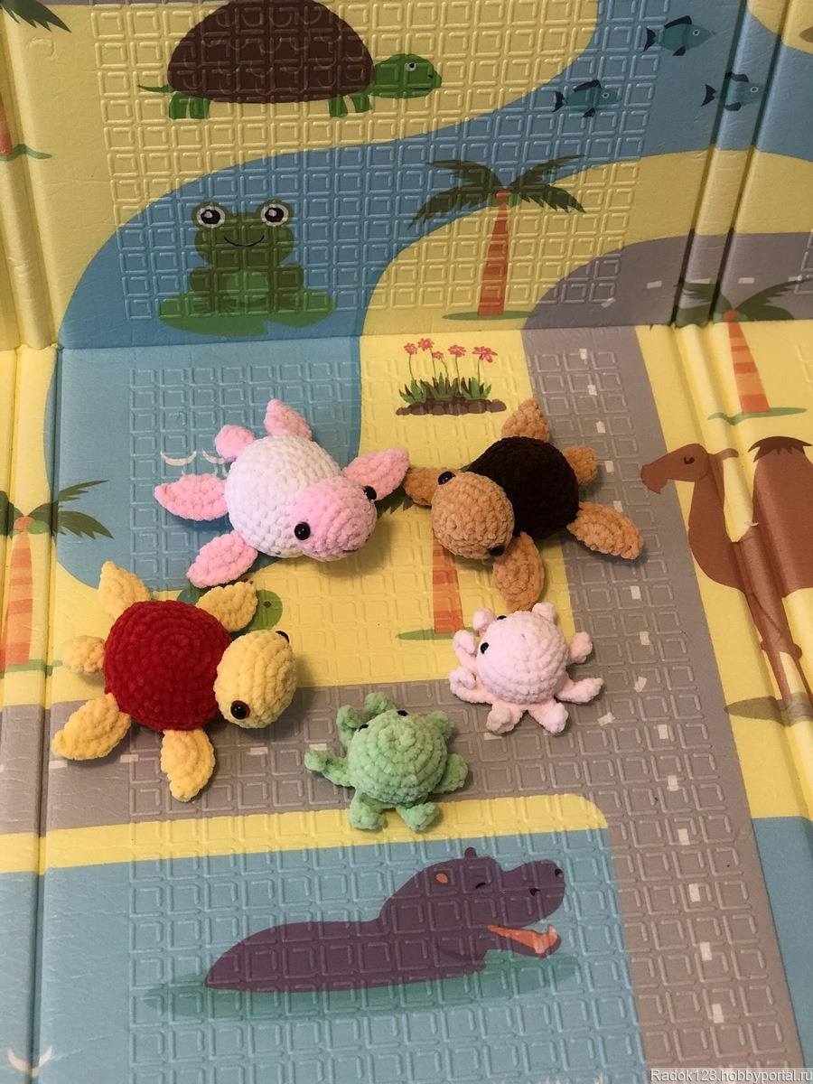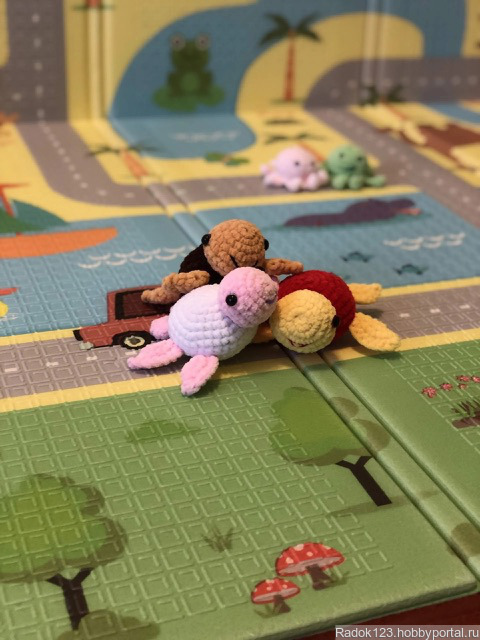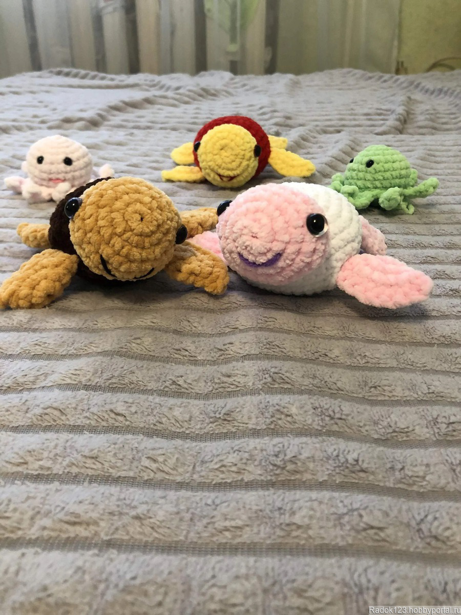 Это милая и добрая семья черепашек?очень веселая и любит путешествовать? и очень хочет попасть в хорошие и добрые детские ручки?? осьминожка в подарок!!