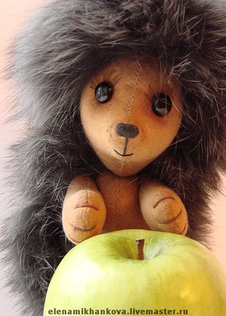 Милый ароматный ежик, очень мягкий, совсем не колючий! Иголочки сделаны из натурального меха. Тонирован кофе и корицей, ручки и ножки подвижные. Стеклянные глазки с длинными ресницами.