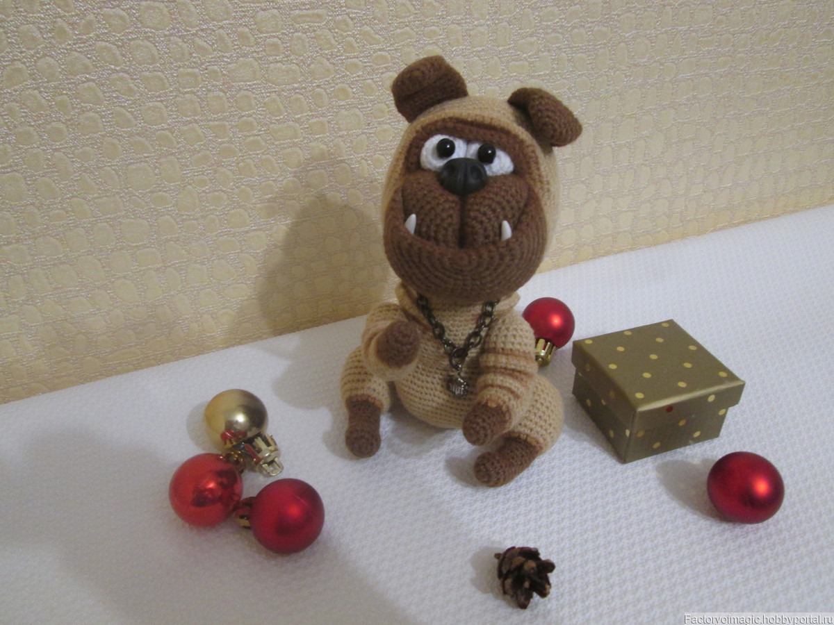 Щенок связан из пряжи коттон + акрил.