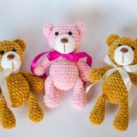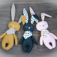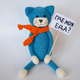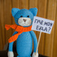 Связан из полухлопка, внутри холлофайбер. Шарфик снимается, табличка убирается.