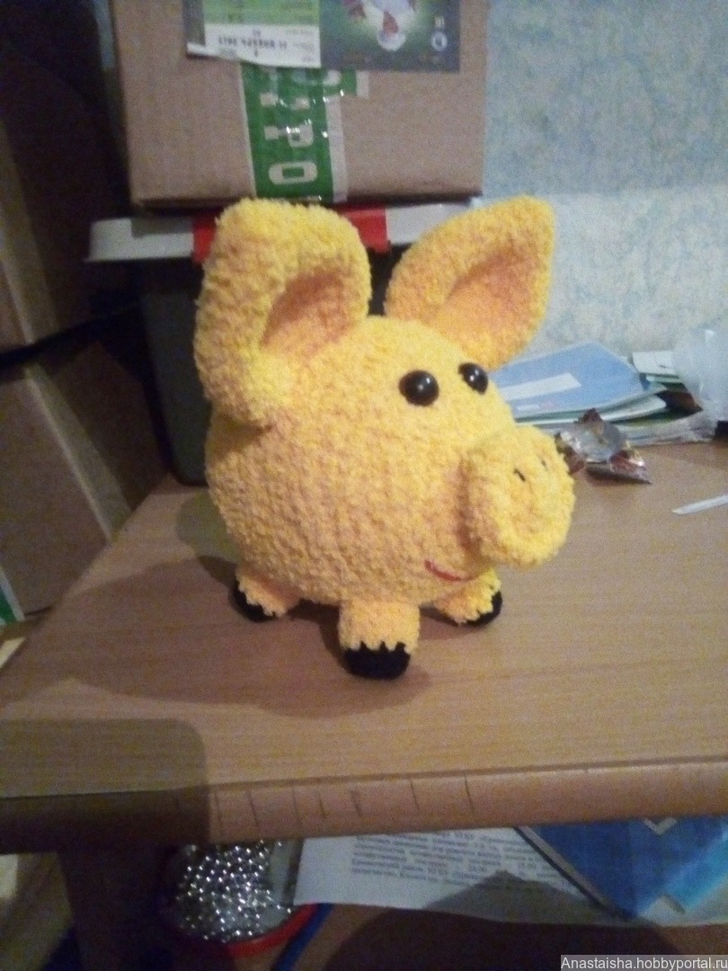 Вязаная хрюшка - символ нового года. Мягкий поросеночек связан из плюшевой пряжи. Мягкий и приятный на ощупь - замечательный подарок к Новогодним праздникам. Возможно выполнение в другом цвете.