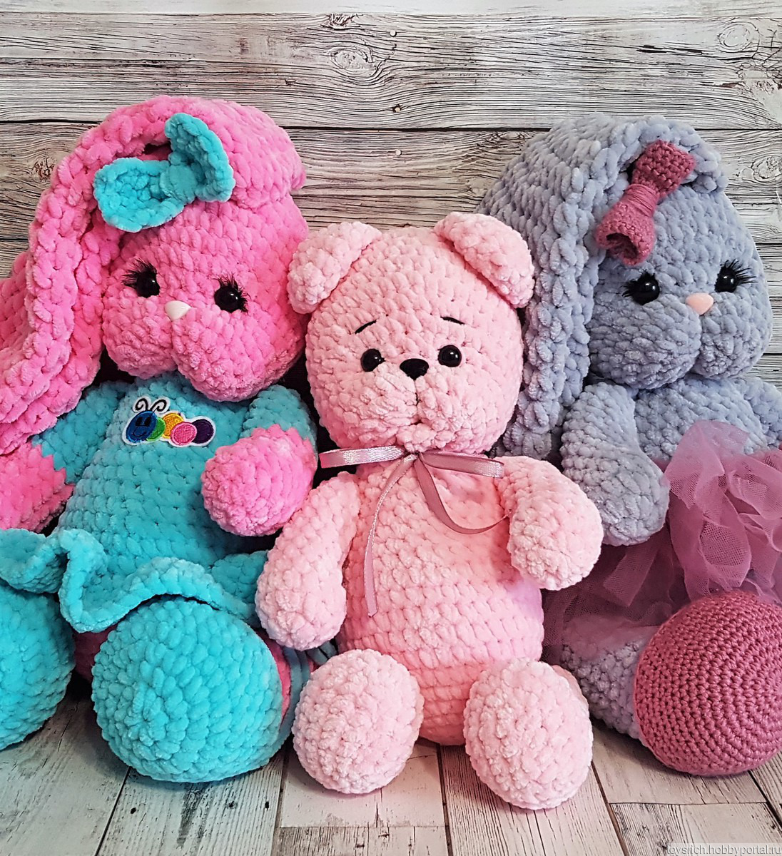Вяжу на заказ плюшевых друзей. Зайцы 35 см-1500-1800 руб., мишка 27 см-900 руб.,черепашка-1400руб. Ручки и ножки подвижные, варианты цветов и одежды по Вашему желанию. Срок изготовления от 2 до 10 дней. Буду рада?