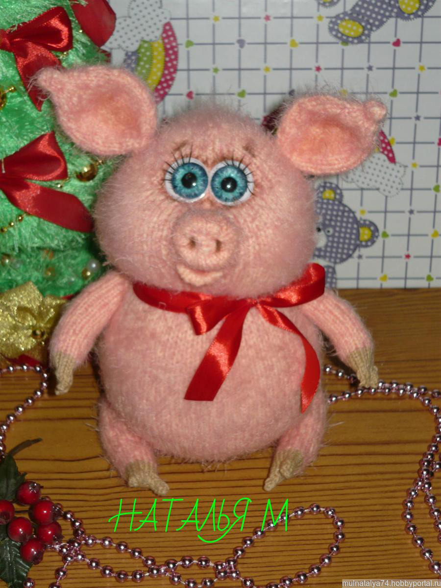 Игрушка Хрюшка связана из мягкой и пушистой пряжи.Очень приятная но ощупь.Лапки подвижные сидит самостоятельно.
