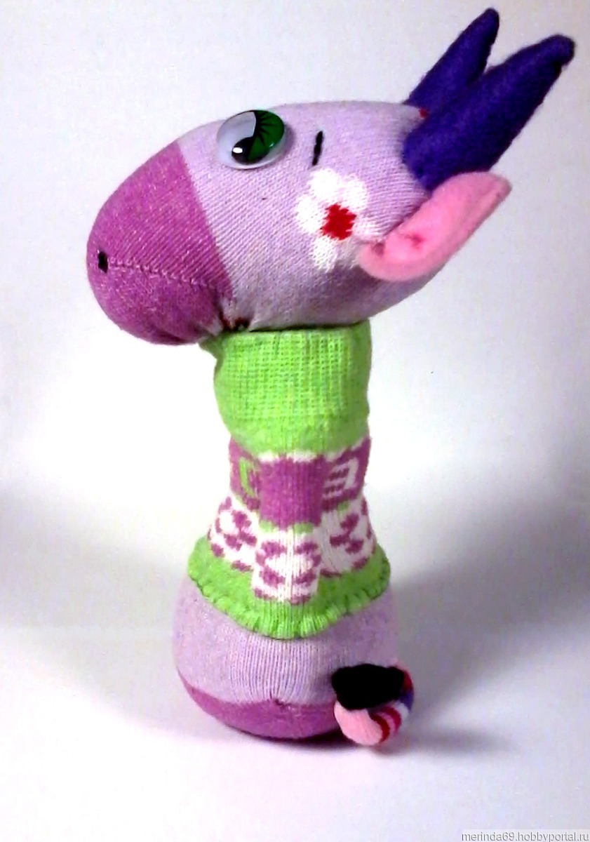 Забавная игрушка из носков. Её приятно держать в руках,дарить и получать в подарок. Такая игрушка может стать прекрасным украшением именно для вашего интерьера, любимицей для вашего ребёнка или прекрасным подарком для подружки.