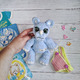 Малыш тискательный и целовательный, удобно лежит в ручке. Голова на шплинтовом креплении, а значит поворачивается на полный оборот. Лапки ввязаны и малыш их не оторвет и не вырвет. Трусики съемные, застегиваются на пуговички.