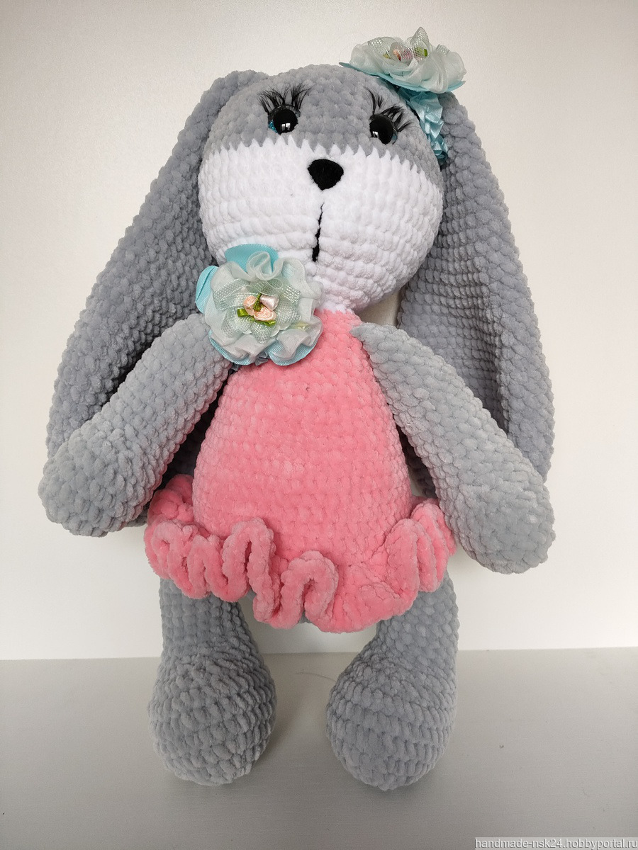 Вязанная игрушка из плюшевой пряжи. Зайка ручной работы. Очень хороший подарок для ребёнка.