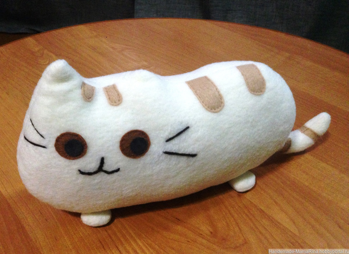 Эта забавная котоподушка прекрасно украсит Ваш диван. Игрушка-подушка подойдет и в подарок близкому человеку, особенно порадует малышей.
