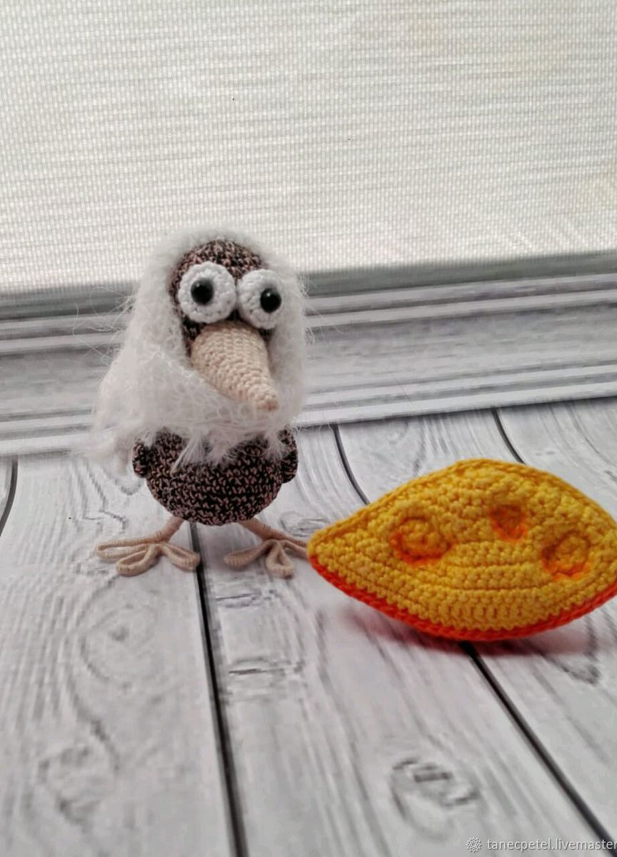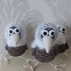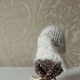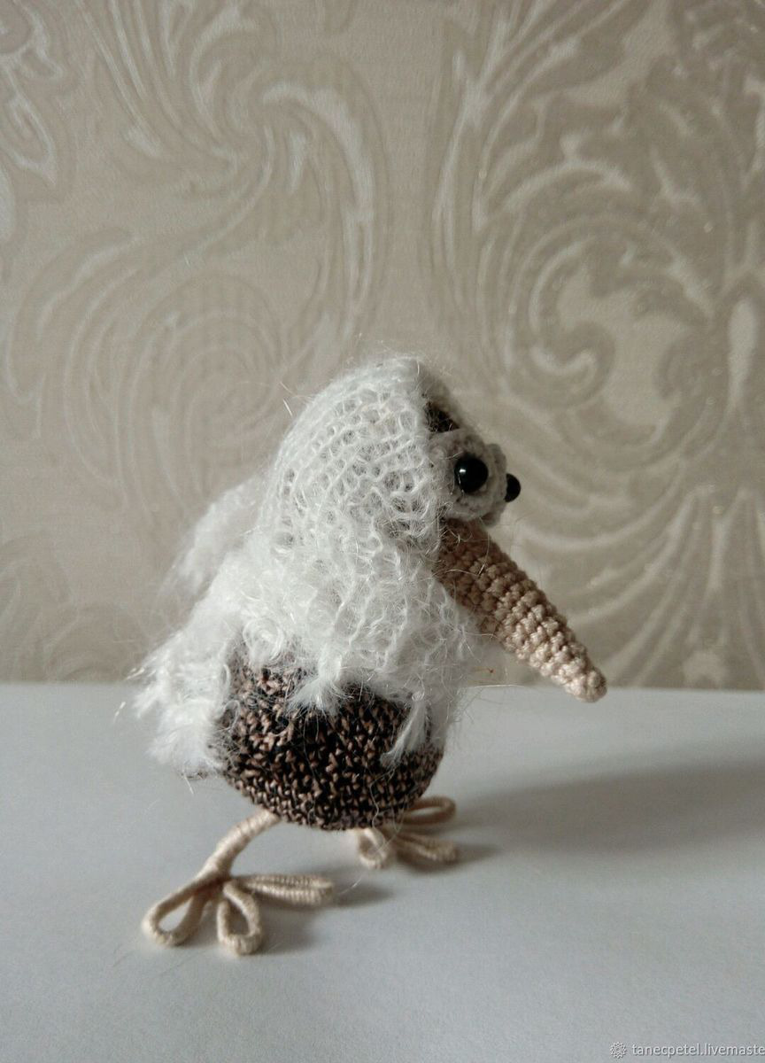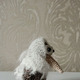 Интерьерная игрушка ручной работы. Рост 7,5 см, самостоятельно стоит без опоры. Связана крючком из экологически чистых 100% хлопковых нитей. Цвет комбинированный - бежевый с коричневым. Наполнитель - синтепон. Глазки стеклянные. Шаль связана из тонкой ангоры, легко снимается. Лапки на проволочном каркасе с спиральным оплётом хлопковой нитью.