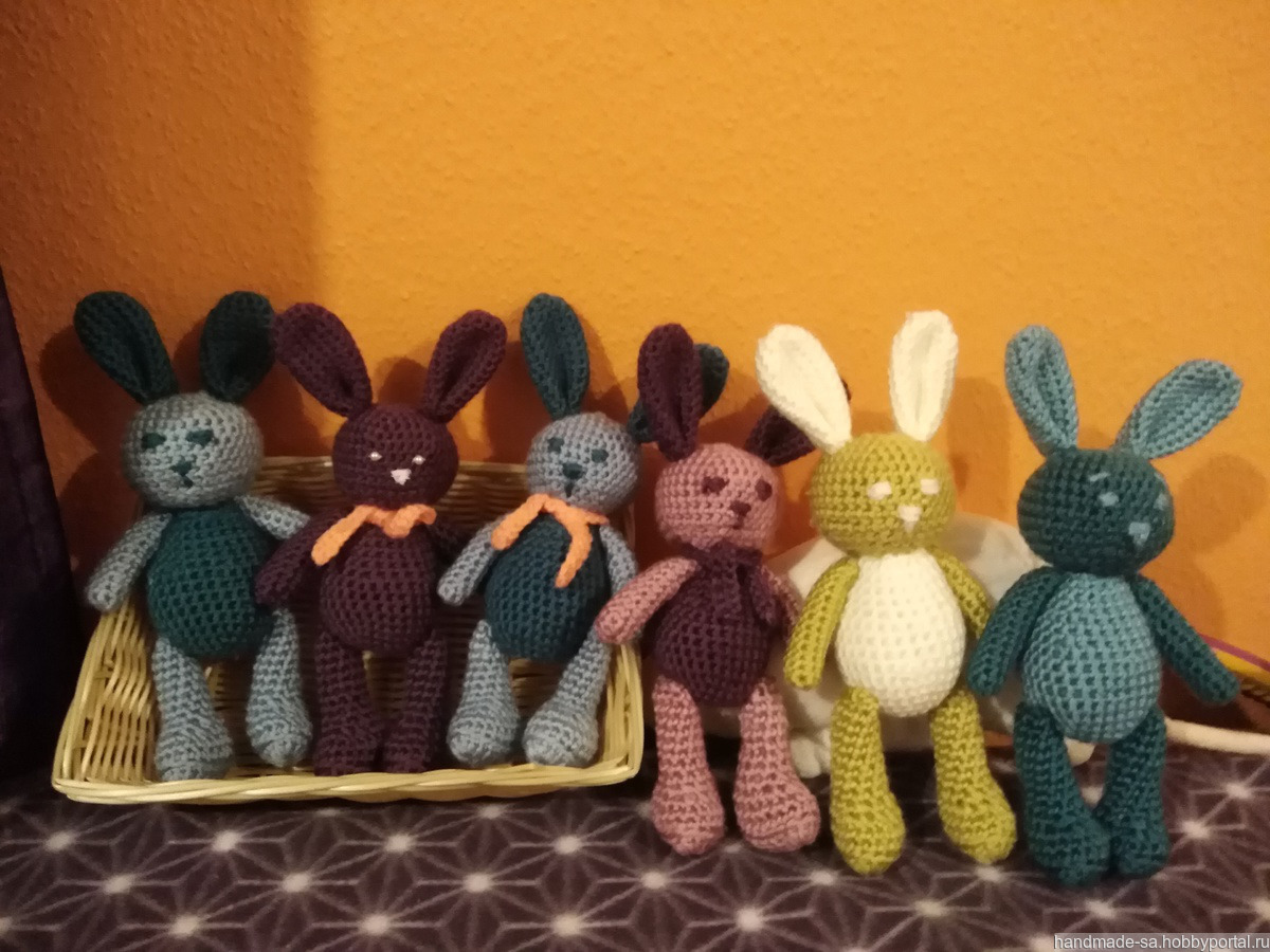 Связала зайчиков, милые мягкие игрушки. Длина 20 см. Разных цветов. Связала брелки на сумки восьминожки.