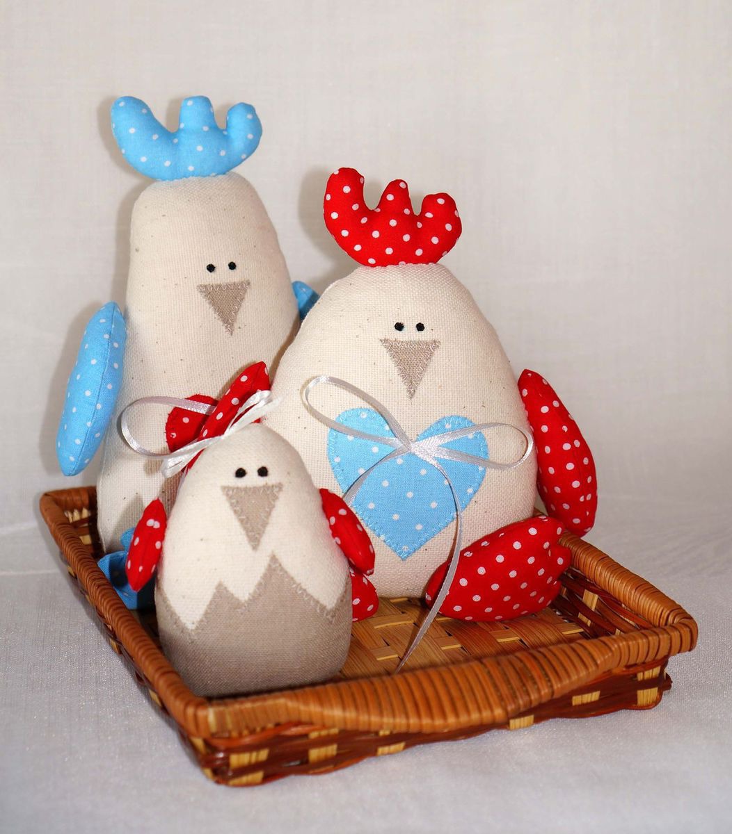 Игрушки из ткани - семья петушков ручной работы на заказ