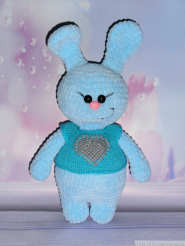 зайка связан из плюшевой пряжи наполнитель холофайбер,игрушка очень мягкая и тискательная,ваш малыш сразу подружится с таким замечательным зайченком