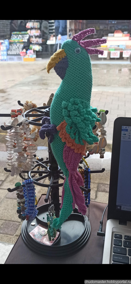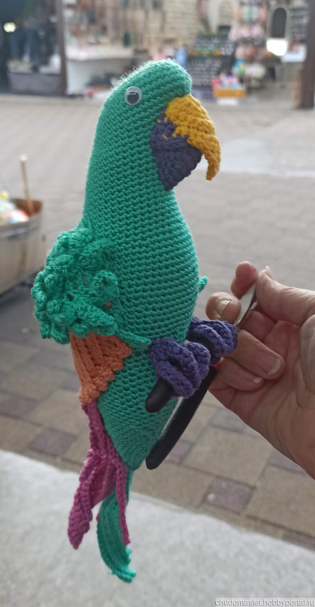 Внутри проволочный каркас позволяющий посадить игрушку на жердочку