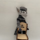 Рост 28 см. Сидит самостоятельно. Каркаса нет. Стоит в специальной подставке (подставка в цену не входит).