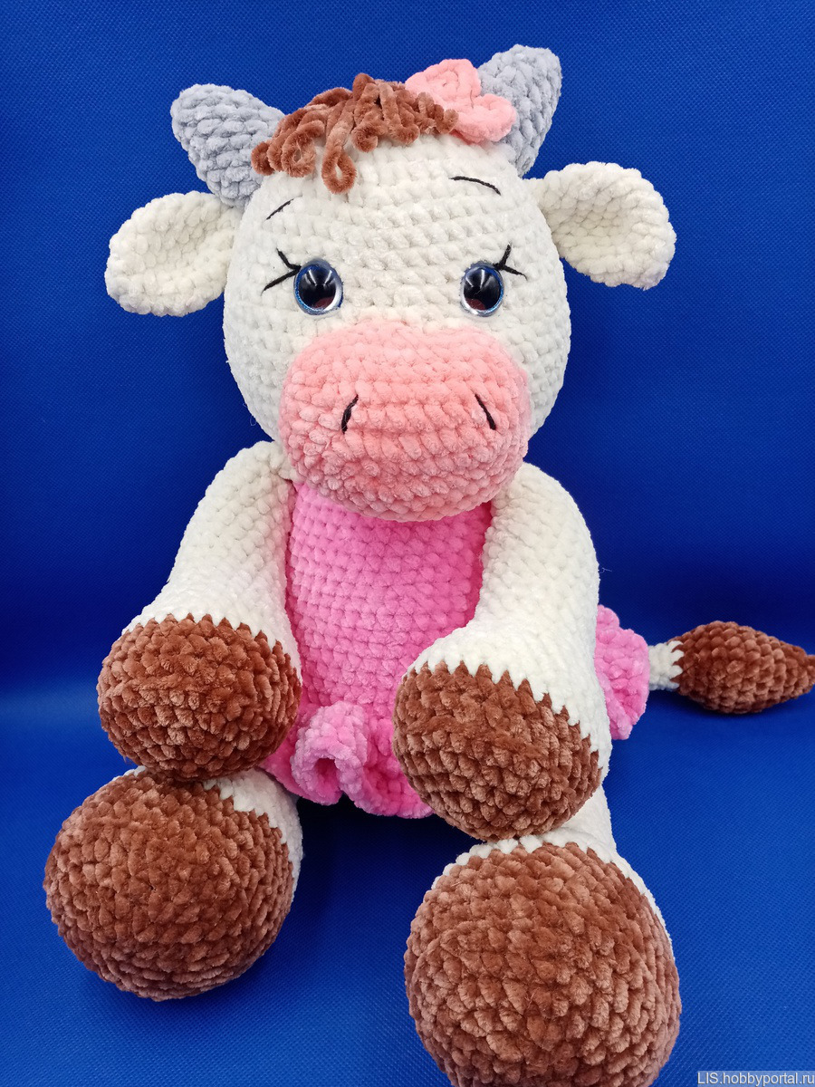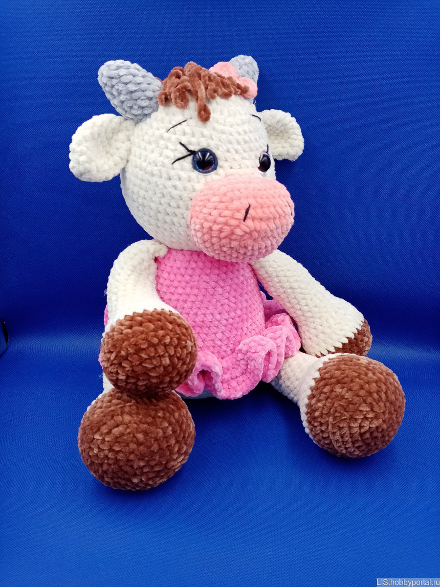 Очаровательная и обаятельная Корова Мика,связана из гипоаллергенной плюшевой пряжи. Станет прекрасным подарком не только для детей, но и для взрослых.
