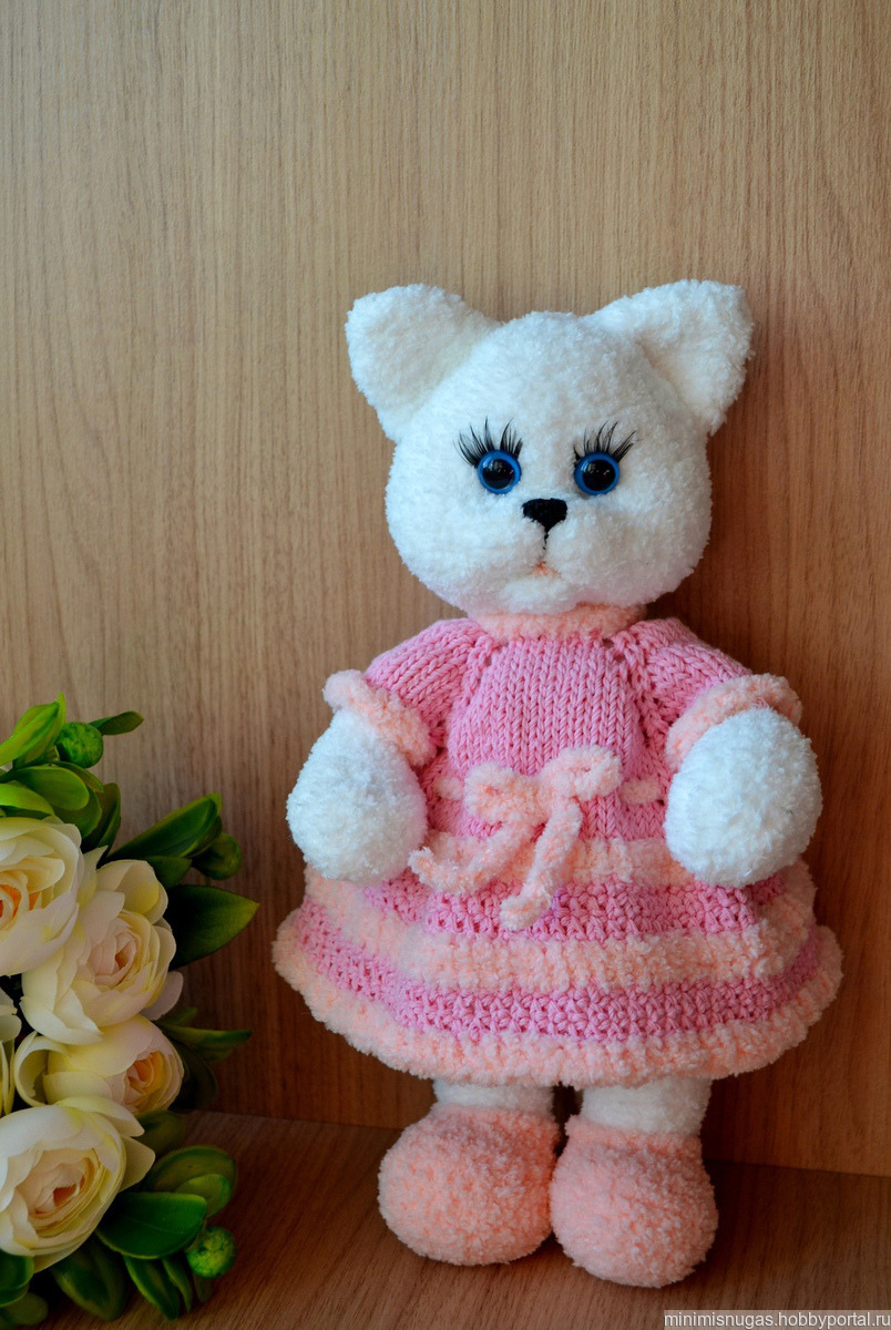Кошечка-малышка ростиком 27 см. связана из Alize Baby Softy платьице из хлопковой пряжи, снимается, сидит и стоит самостоятельно.