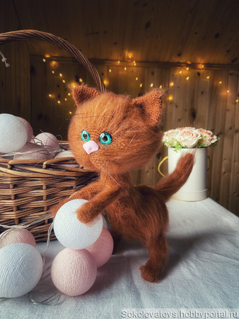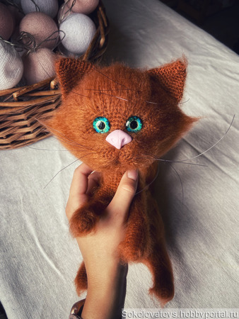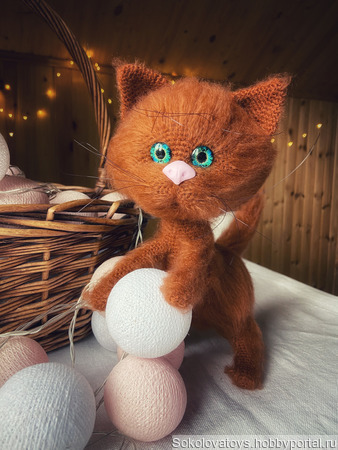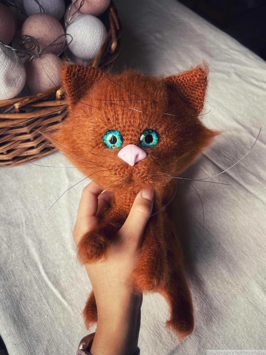 Невероятно милый, мягкий и трогательный кот. Прекрасный подарок для всех любителей котиков, да и вообще для всех ценителей красоты и оригинальности. Глазки на безопасном креплении. Носик из полимерной глины. Внутри каркас, поэтому может стоять самостоятельно.